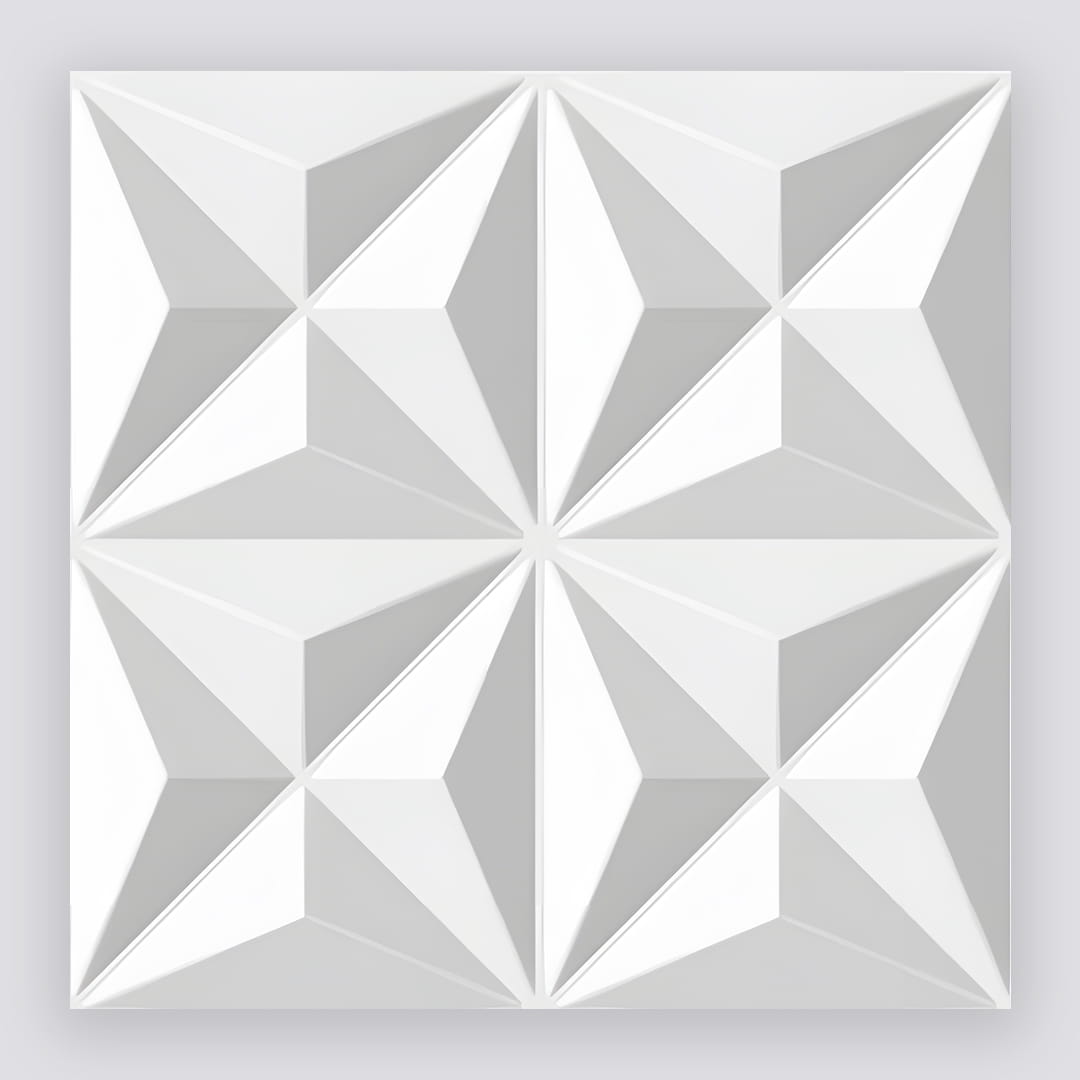 Padrão de diamantes em alto relevo com linhas precisas e arestas marcantes. Cria um visual luxuoso e contemporâneo, com forte contraste de luz e sombra. Ideal para paredes de TV, halls e ambientes que querem destaque. Acabamento premium com excelente acabamento.
